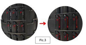 To close, pull both ends slightly outward to release the latches from the slots(Pic. 3)
