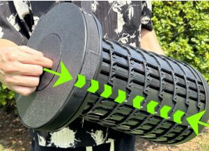 Your folding stool can be carried in several ways. Via the shoulder strap or the handle strap